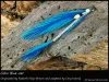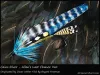 Tied by: Cory Koenig Originated by: Cory Koenig Hook: Vision 1/0 2xl Thread: 6/0 white Tail: 2 light blue hackle tips flanked by navy blue hackle tips...