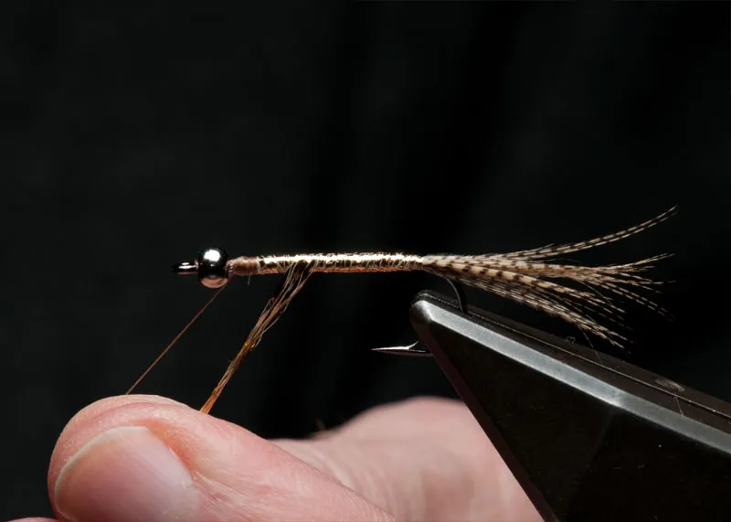 Take the flash to the rear of the hook and back in touching turns, keeping it flat all the time