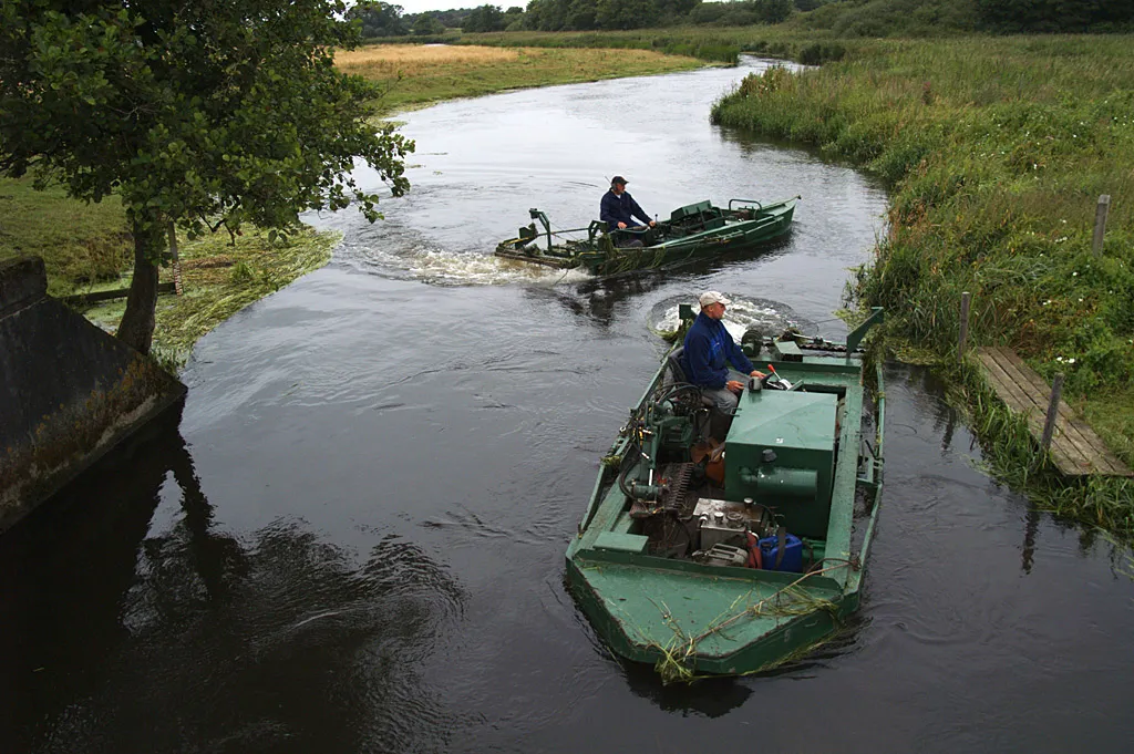 River keepers preparing for cutting the vegetation in a Danish river - ruining the fishing downstream for a day or two