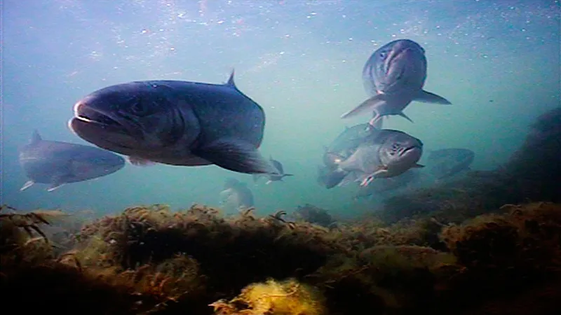 A school of trout are caugth passing one of Niels Vestergaard's underwater cameras