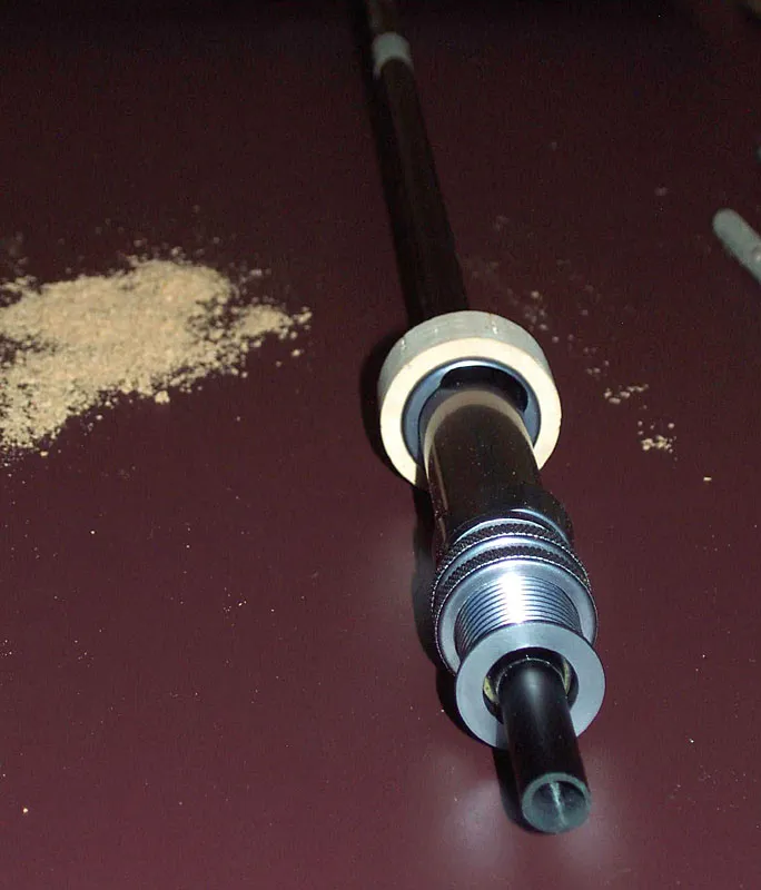 New cork ring on recessed hood. No visible cracks as with the original cork ring. Please note glue ring inside of the reel seat