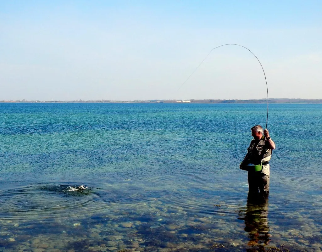 When the rod is this high and this bent, there is very little power in the pull, and the rod will just bend if you or the fish pulls. That's the whole idea.