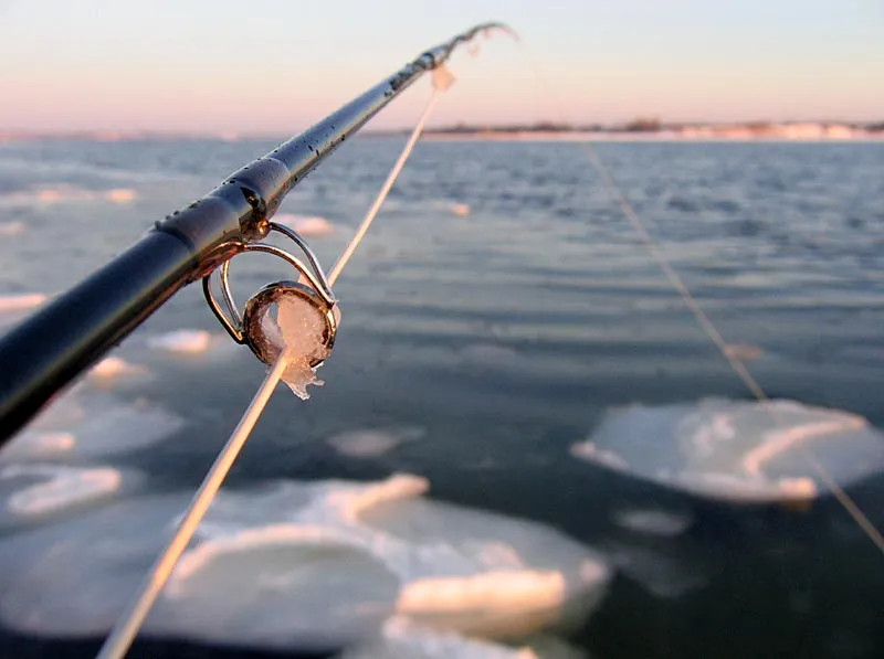 A shooting ring blocked by ice. Fishing in frost means cleaning snake rings and shooting eyes with regular intervals.