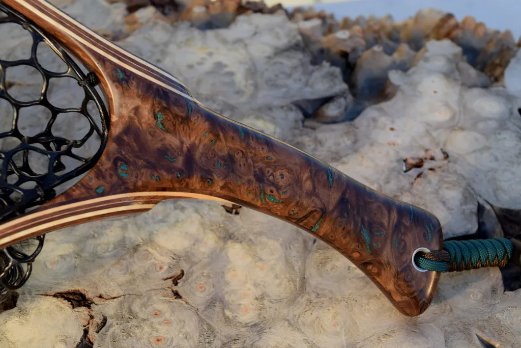 Look closely & you'll see inlays of malachite in this Turkish walnut burl handle