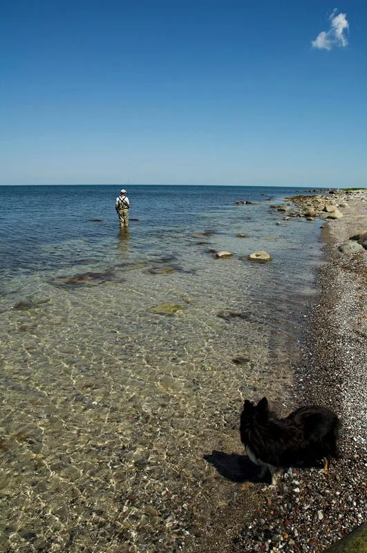 On this particular day I saw several mullet cruise behind Kasper who is less than 10 meters out in the water