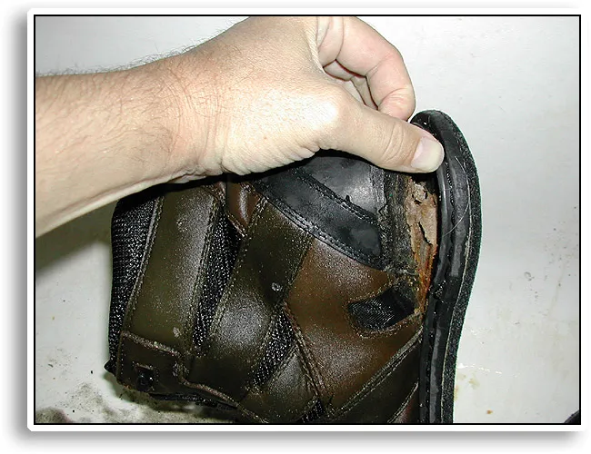 That was not the intention! Unfortunately the stitches on these Chota boots held not only the soles, but also the upper part. That - of course - came apart when I cut the stitching to remove the old felt.