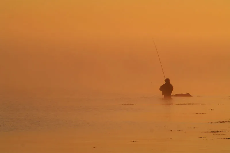 This angler and the rock are the only things standing out in this fabulous misty sunrise.