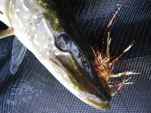 A smallish pike has fallen for a Valeur Pike Streamer.