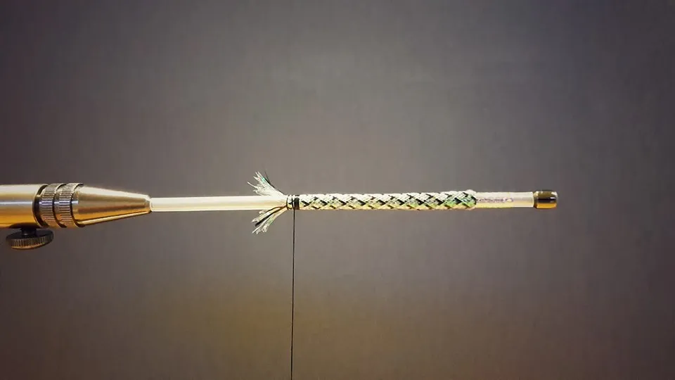 Wind the thread down the tube, away from the Mylar tube and reverse the Mylar tube over the thread by pushing it gently so that it folds over and turns the inside out. Tie it down.