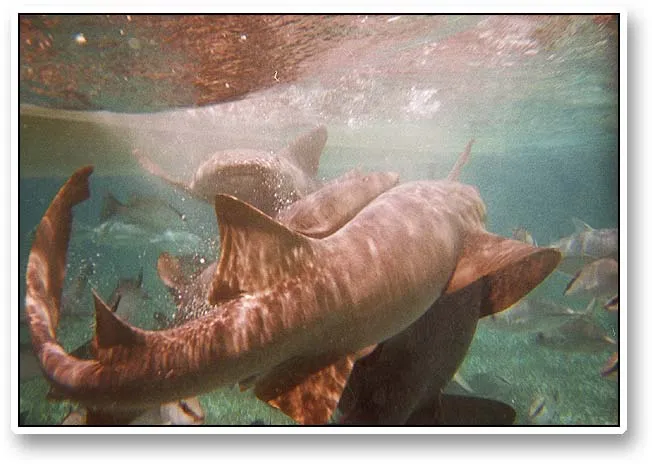 If you want to swim with sharks, nurse sharks are the right ones to choose. In the chumming frenzy they are definitely most concentrated on the sardines and not on you legs or arms! That can be reassuring...
