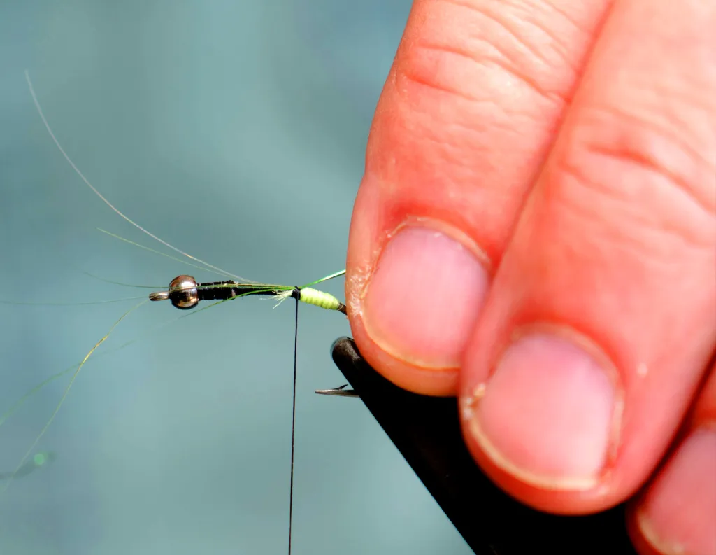 Wrap the thread for the tag one or two times back and forth to create a dense colored tag. Tie down and trim. You can consider varnishing it to enhance the color and durability. Tie in some flash for the tail