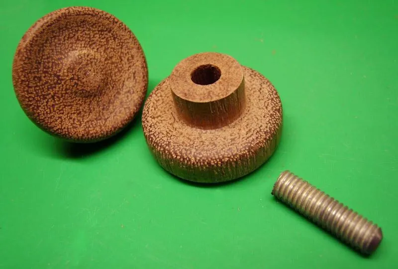The clamping screws with a piece of a bolt, that we glue inside the wooden part