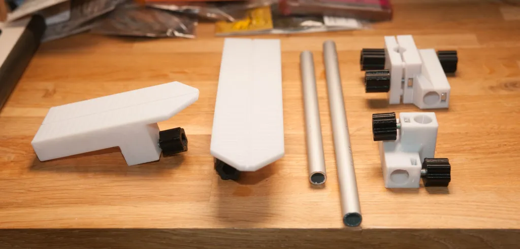 The tool disassembles into a few parts, and can be packed down. Left you see the short and the long "platforms".