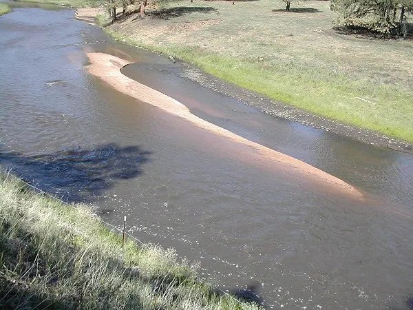 Circa 2002: The South Platte River runs grey from the silt, ash and charcoal embers. The banks were lined with black charcoal up to an inch in diameter.