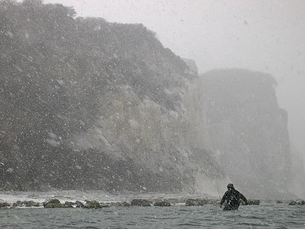 Rough weather will often produce some fantastic pictures. But most anglers leave their camera in bags and pockets when it rains or snows. Be quick about it and shelter the camera with your jacket hood, and images like this can be captured with no harm to the camera.