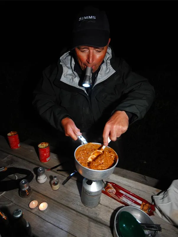 Henning is heating a couple of cans of good food.