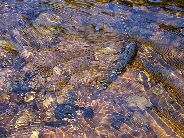 A nice little YellowDog Native the wife picked up using her 4 wt. phluger and a #18 dry fly.