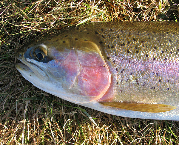 The business end of a Rainbow, about 3lb, caught from the River Test on a freezing cold day.