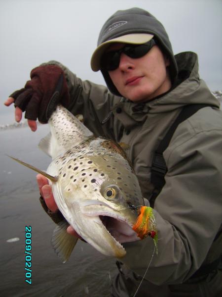 We Piterburge to have this opportunity to catch sea trout in the Gulf of Finland, but very few people enjoy this. I do poberezhem two years and not seen in other water flyfihers except for my friends ... We have to develop this area, although this is not easy.