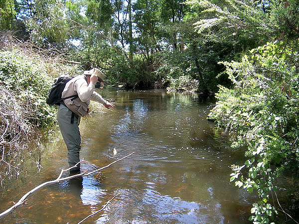 You soon refine your roll cast technique here between the blackberries and the ti tree. 50 trout up to 2lb, for the day, all released. Most were brownies and caught on dry fly.